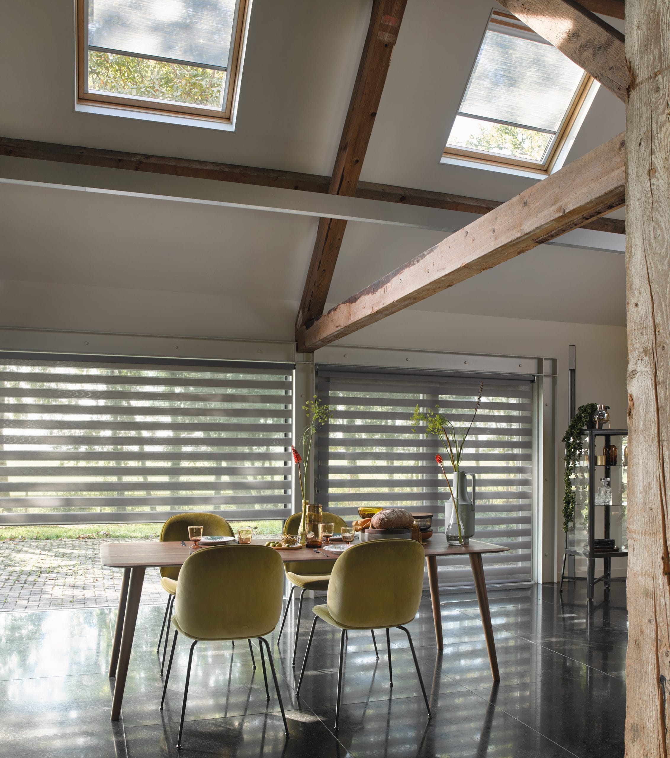 Våra Twist rullgardiner är det perfekta exemplet. Genom att styra de solida och transparanta vävarna så att de överlappar varandra kan du skapa ett perfekt och exakt sol- och insynsskydd under hela dagen.